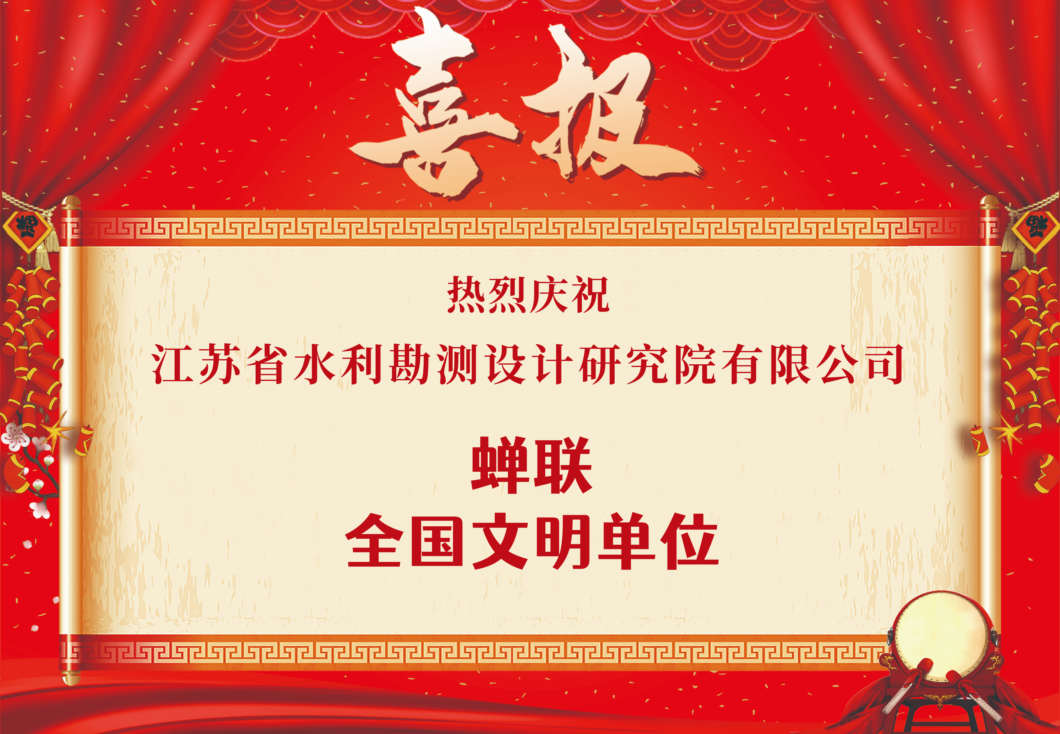 喜報(bào)!公司蟬聯(lián)“全國(guó)文明單位” 榮譽(yù)稱號(hào)
